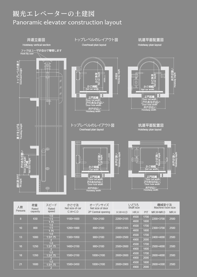 Car wall: Safety laminated glass Handrail: Mono-tube stainless steel Floor: PVC